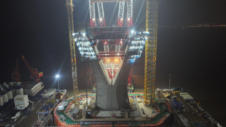 随着下横梁提升工程圆满完成,青龙门大桥建设正式进入塔柱“拔节生长”阶段。目前正值新春,项目部紧紧抓住“新春保生产”的契机,通过优化工序衔接,安排24小时轮班作业,争分夺秒抢抓春季施工黄金期,全力奋战“开门红”,力争在2025年实现大桥主塔封顶,为2027年全线贯通奠定基础。